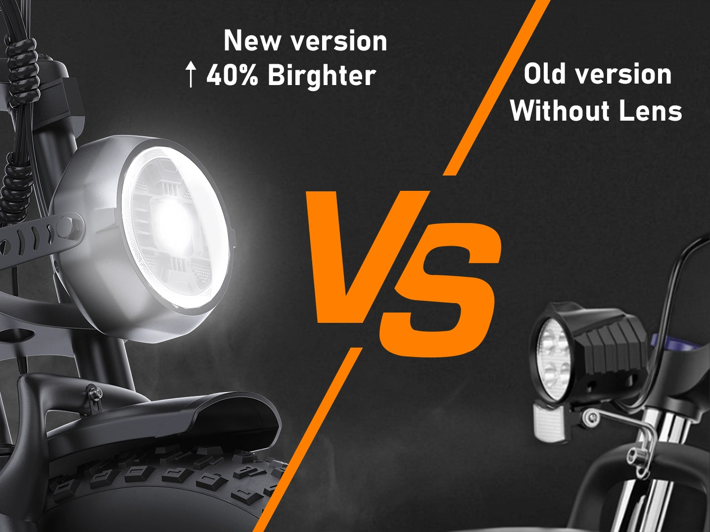 The front headlight adopts a precision projector lens design, paired with three high-power LED bulbs. Its brightness is 30% higher than the previous generation, boasting an illumination range of up to 100 ft. The concentrated light beam delivers wider coverage while reducing glare, minimizing light scatter to enhance safety for oncoming pedestrians and vehicles.