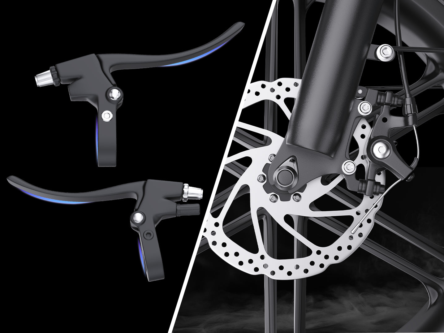 QS7 boasts high-performance mechanical disc brakes (160mm rotors + metal pads) for stable, powerful stopping—even on steep trails or wet roads. Its lightweight frame boosts brake responsiveness for quick, confident stops, while metal pads add durability and cut maintenance.