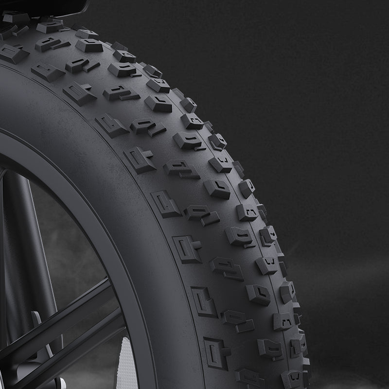 Deepower’s 20"x4" Sunrise puncture-resistant wide tires (deep tread for soft/slippery grip) and front suspension handle flat roads, mountain trails, snow, and gravel with ease—absorbing bumps to deliver a stable, worry-free ride anywhere.